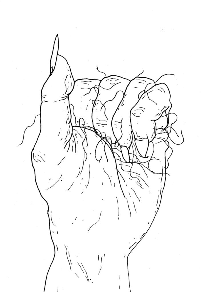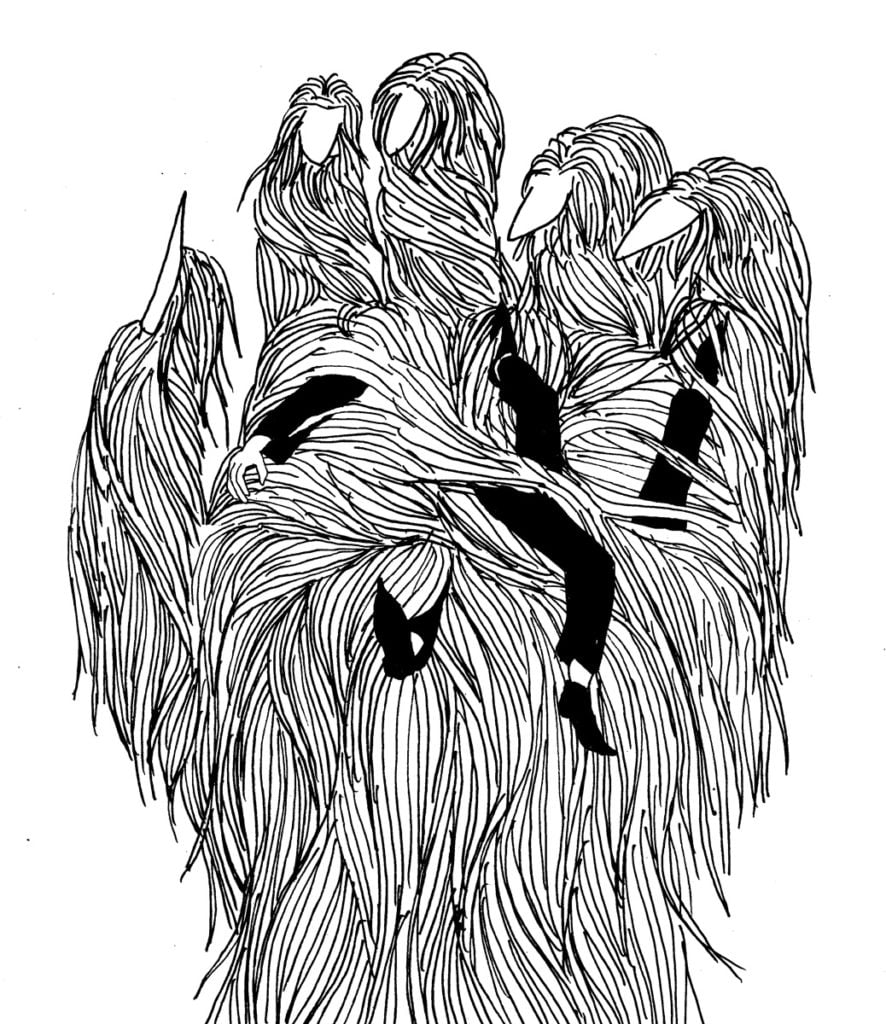 The window of this small room is wide open and the cold hits my body. I feel goosebumps on my back and arms. I knead my body for heat, cross my hands, close my eyes, throw my arms around myself and quickly massage my arms up and down. I’m startled as my fingertips move down to my forearms, I pull my fingers away and open my eyes. My forearm is covered in densely growing hairs, three to four centimetre long. The texture is like a gosling’s down, the soft and light hairs move in the wind that is coming in through the window.